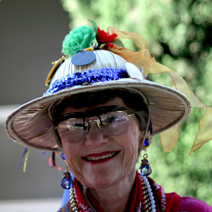 Gail explains the fine points of juggling to Carpy and some serious onlookers!