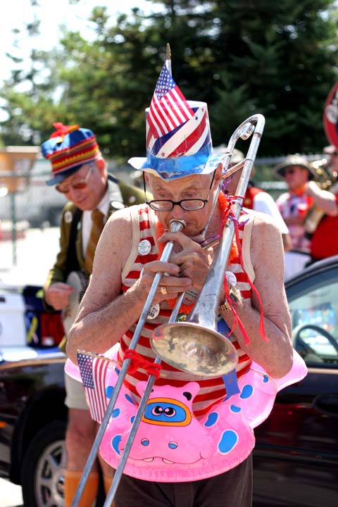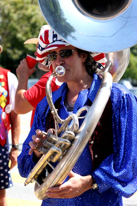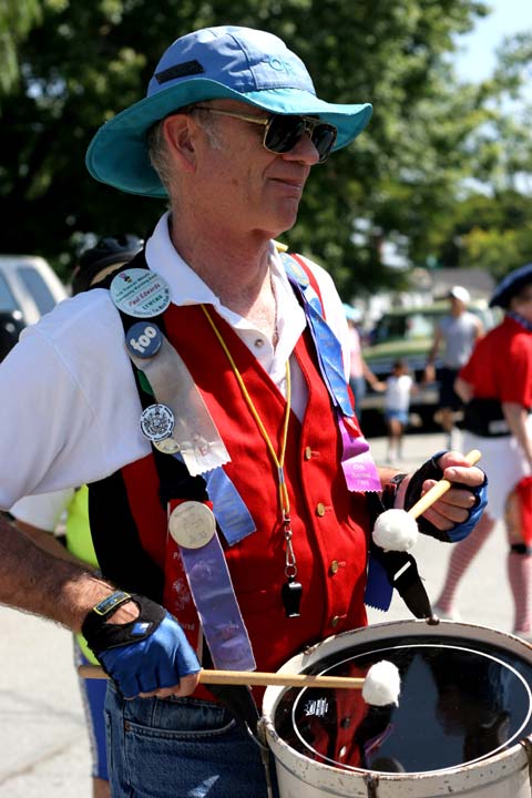Stu wore his beer-cup-red outfit for the biggest parade of the year!