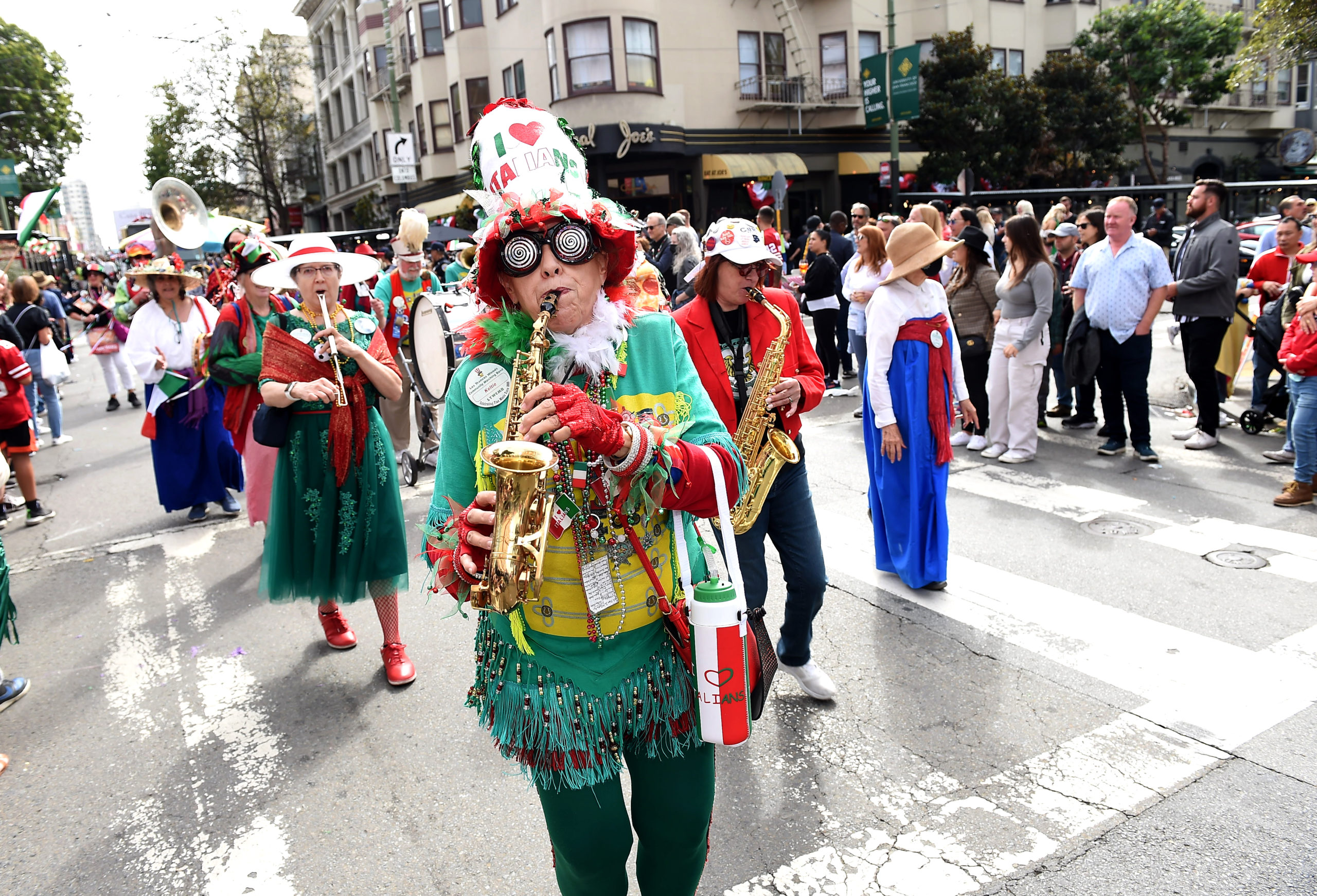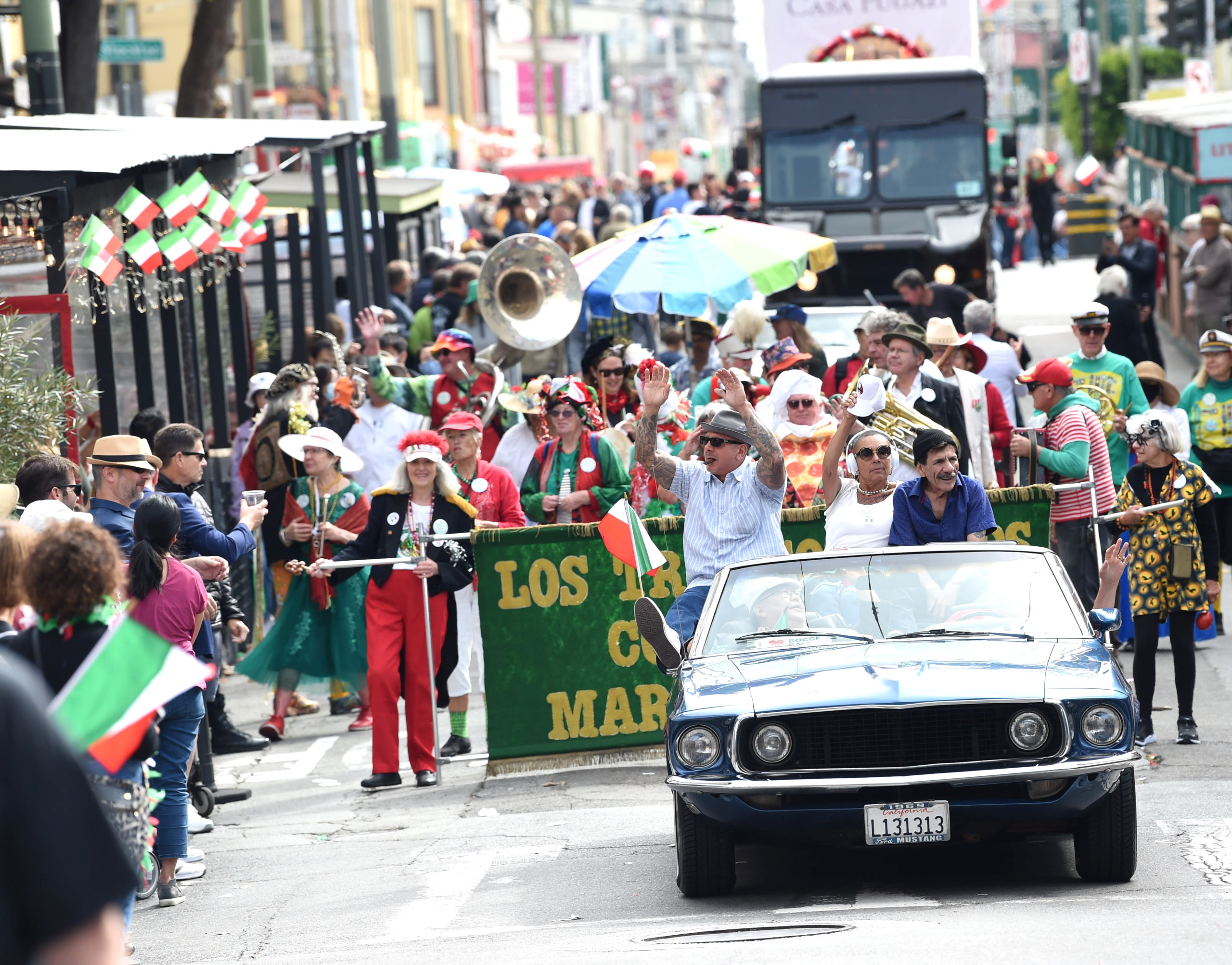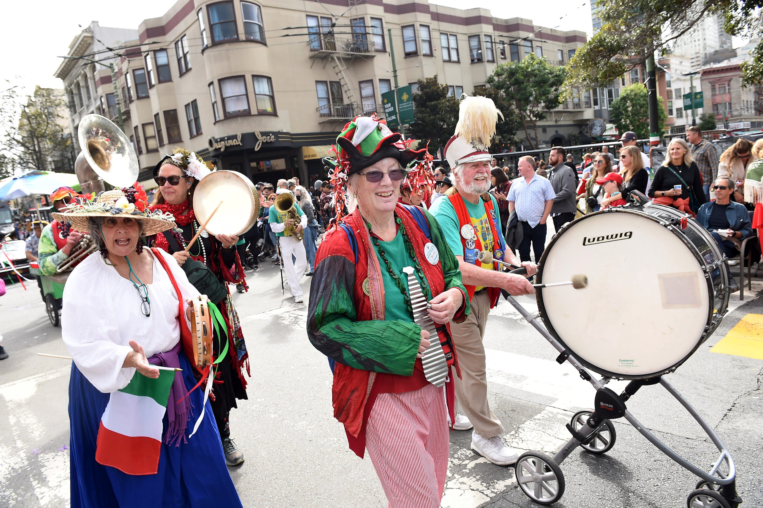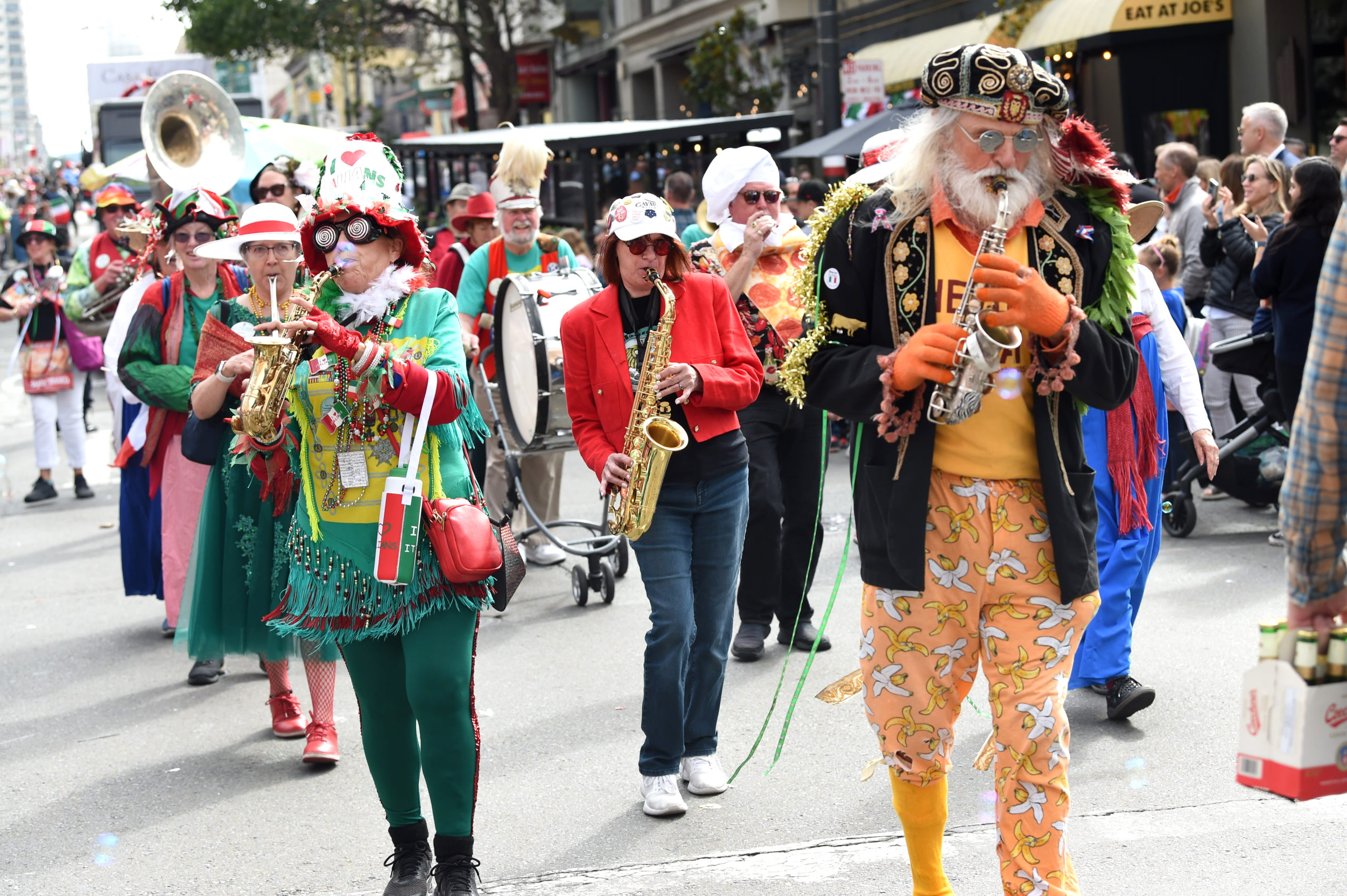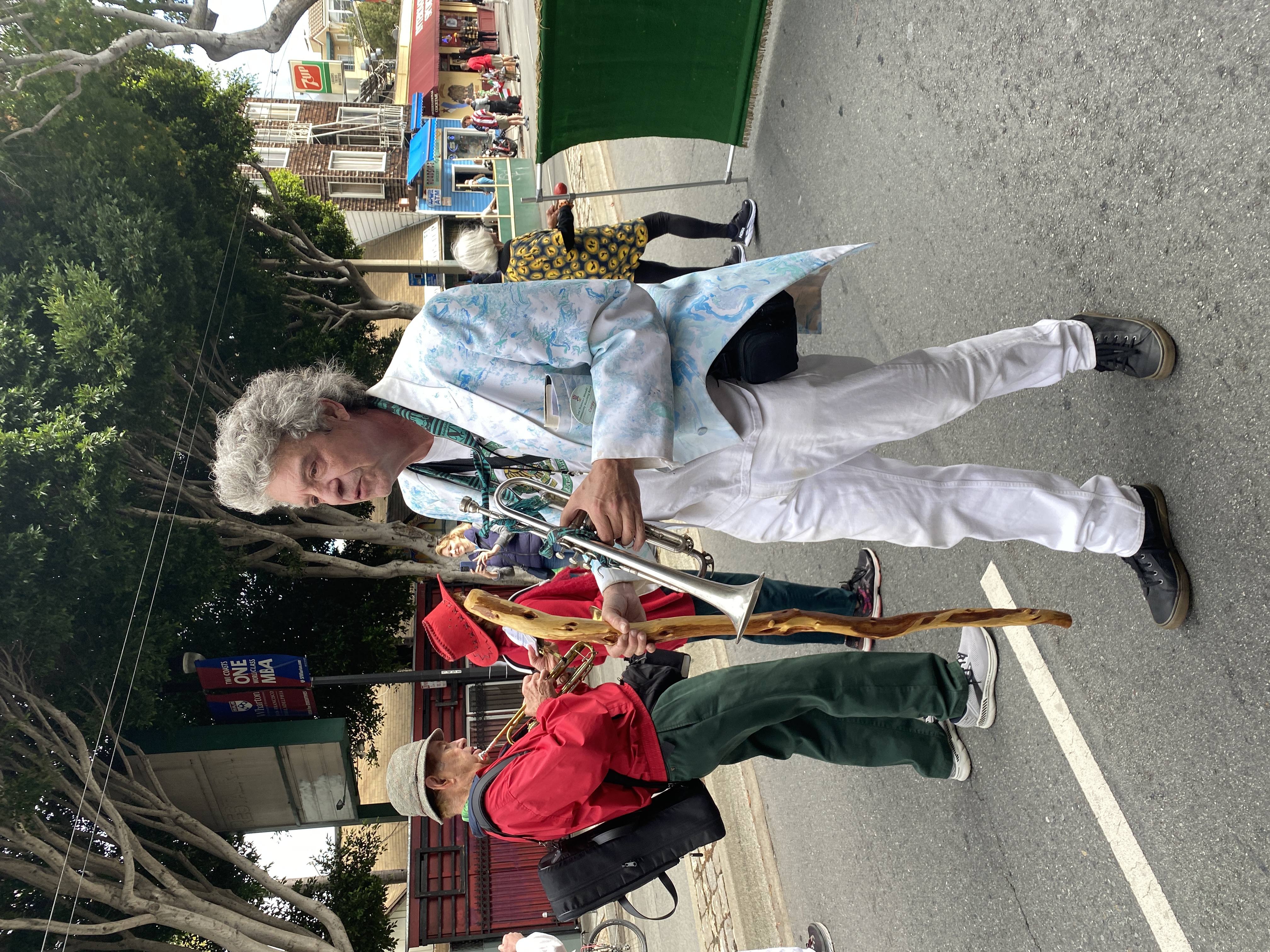 The Italian Heritage Parade (Columbus Day) was back to its full glory this year! We had a good band turnout, and we were well received by the thousands of spectators. The Blue Angels flying overhead were obscured, however, by a fast-moving fog layer which created occasional gusts of wind at street level. |