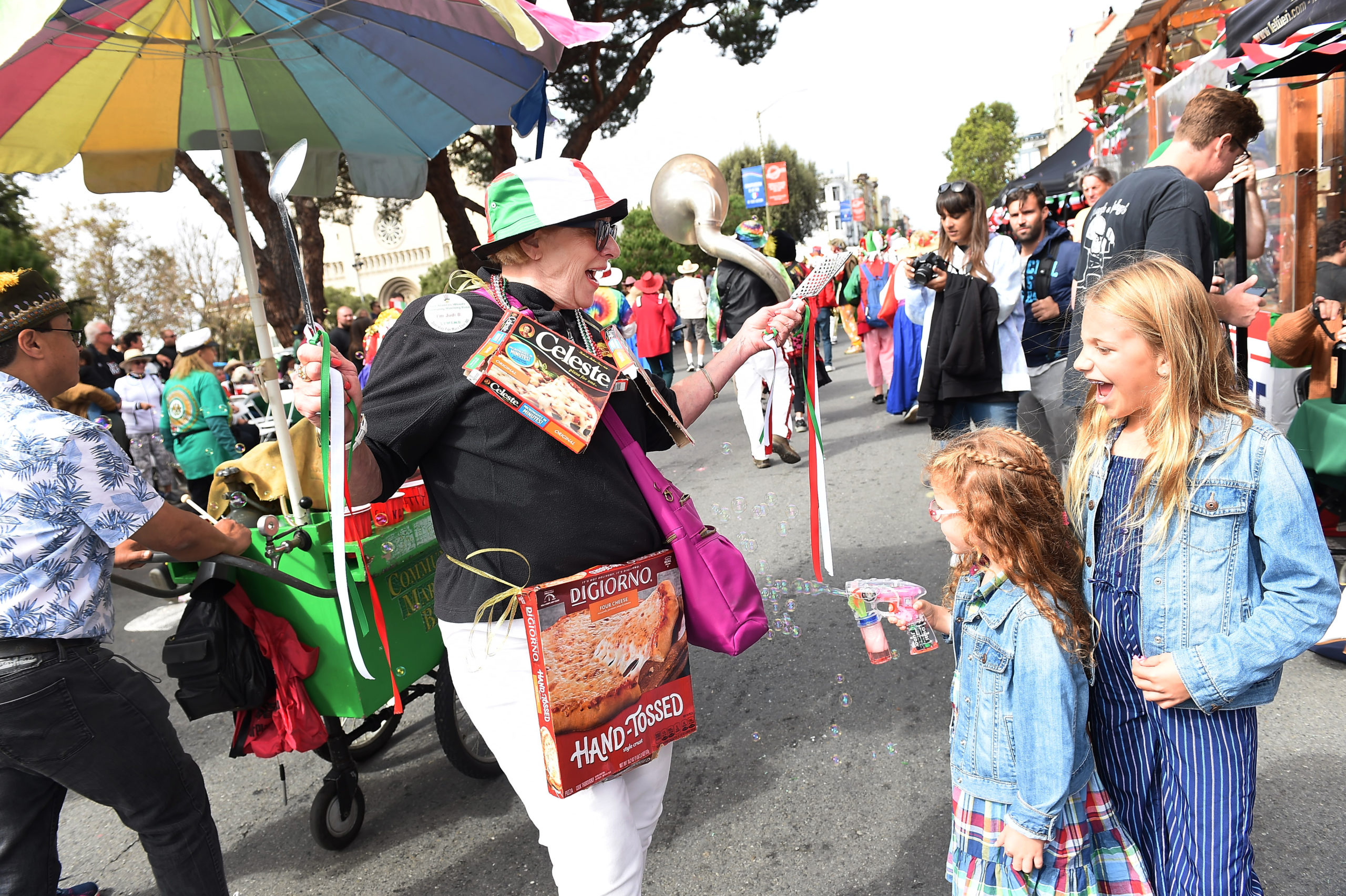 [7] Judi, our pizza girl, is a big hit with the audience!
