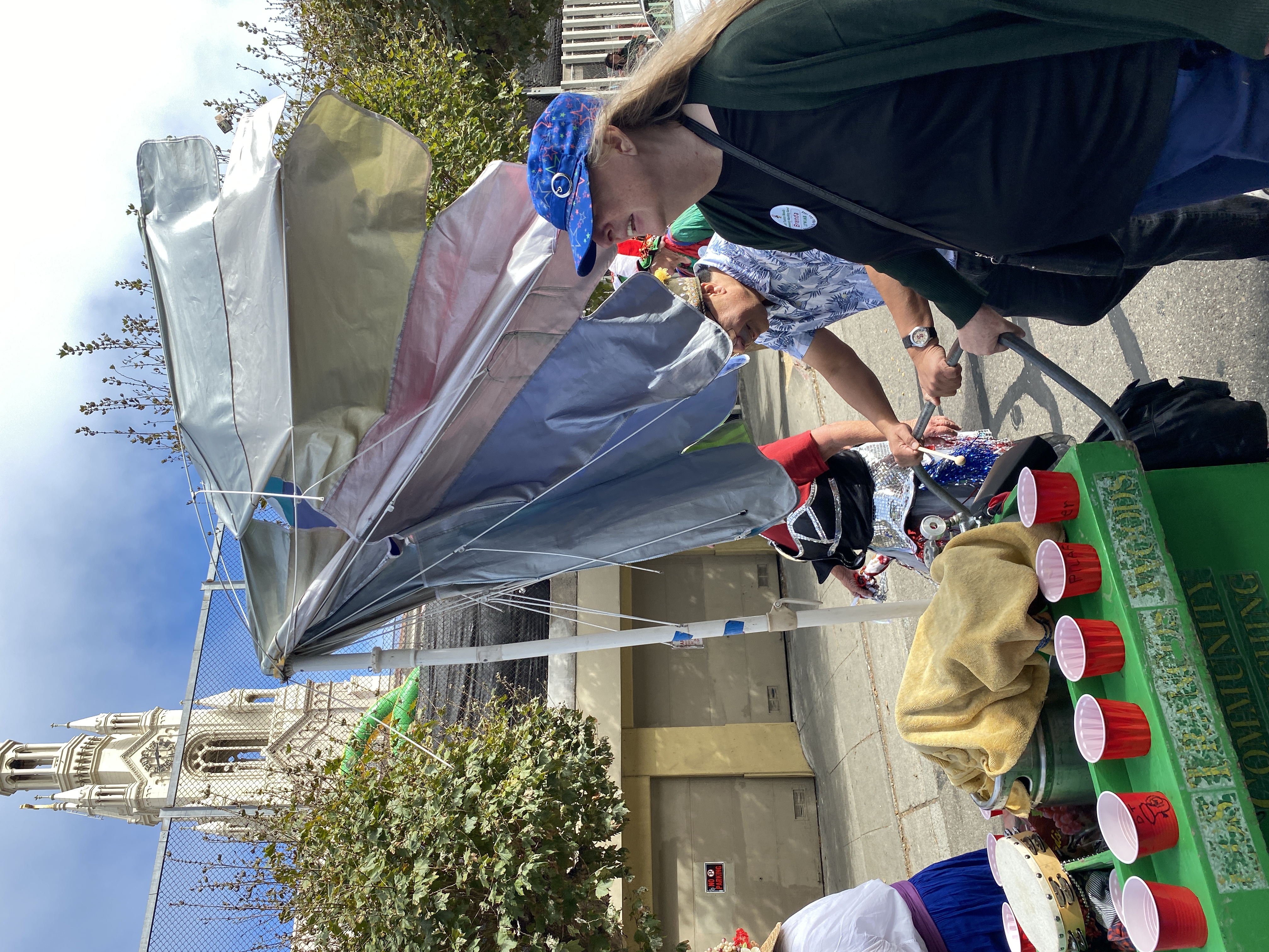 [21] Just as we passed the judging stand, a big gust of wind blew the cart umbrella inside-out!