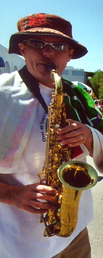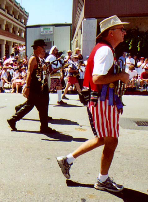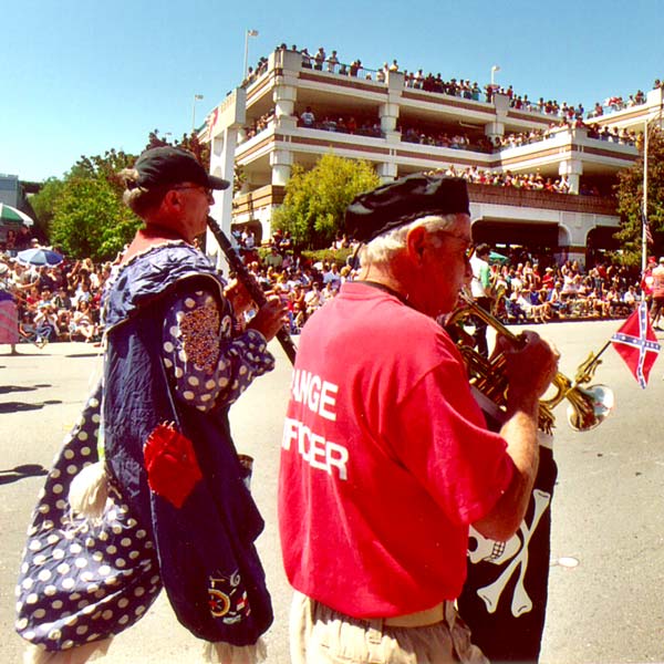 Our drum major, Rich Erhardt, led us on to victory along a new parade route,