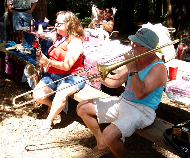 New members Susan and Chuck are enjoying the fine ambiance of the band in the woods.