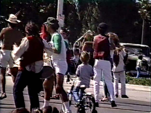 Ptah bought a new camcorder back in 1985 or so, and only recently uncovered some old tapes taken when the unit was still a novelty. These still shots were taken from Ptah's video of the Santa Clara Parade of Champions, October 5, 1986. This parade and our Annual Rehearsal, February 8, 1987, are available together on a DVD for your viewing pleasure!  |