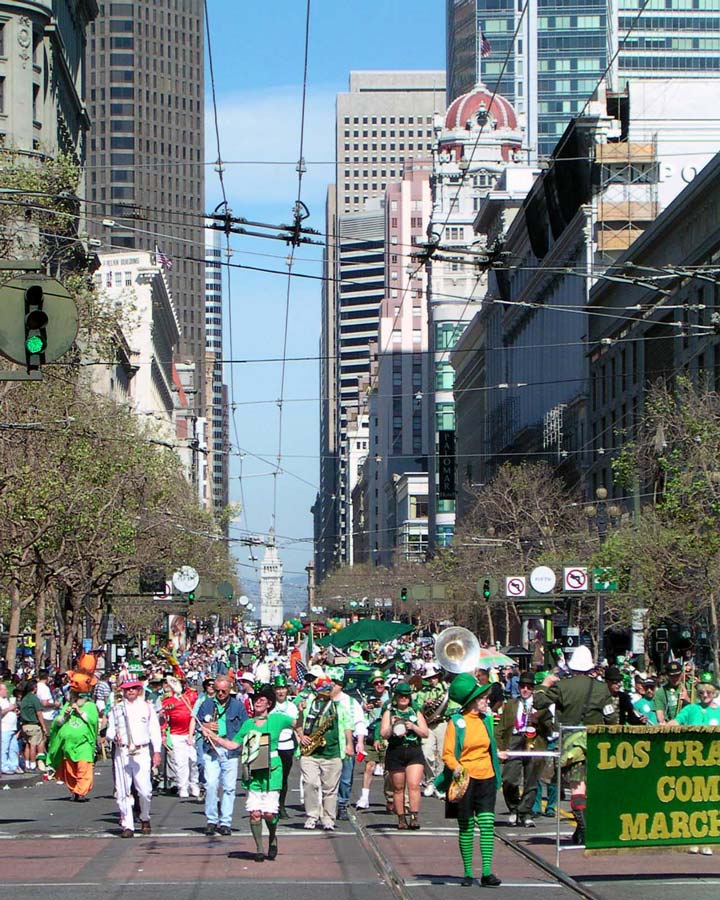 A bright, warm, sunny day was on hand for the traditional St. Patricks Day Parade in the City. The turnout was heavy, as many spectators lined Market Street for the entire parade route. |